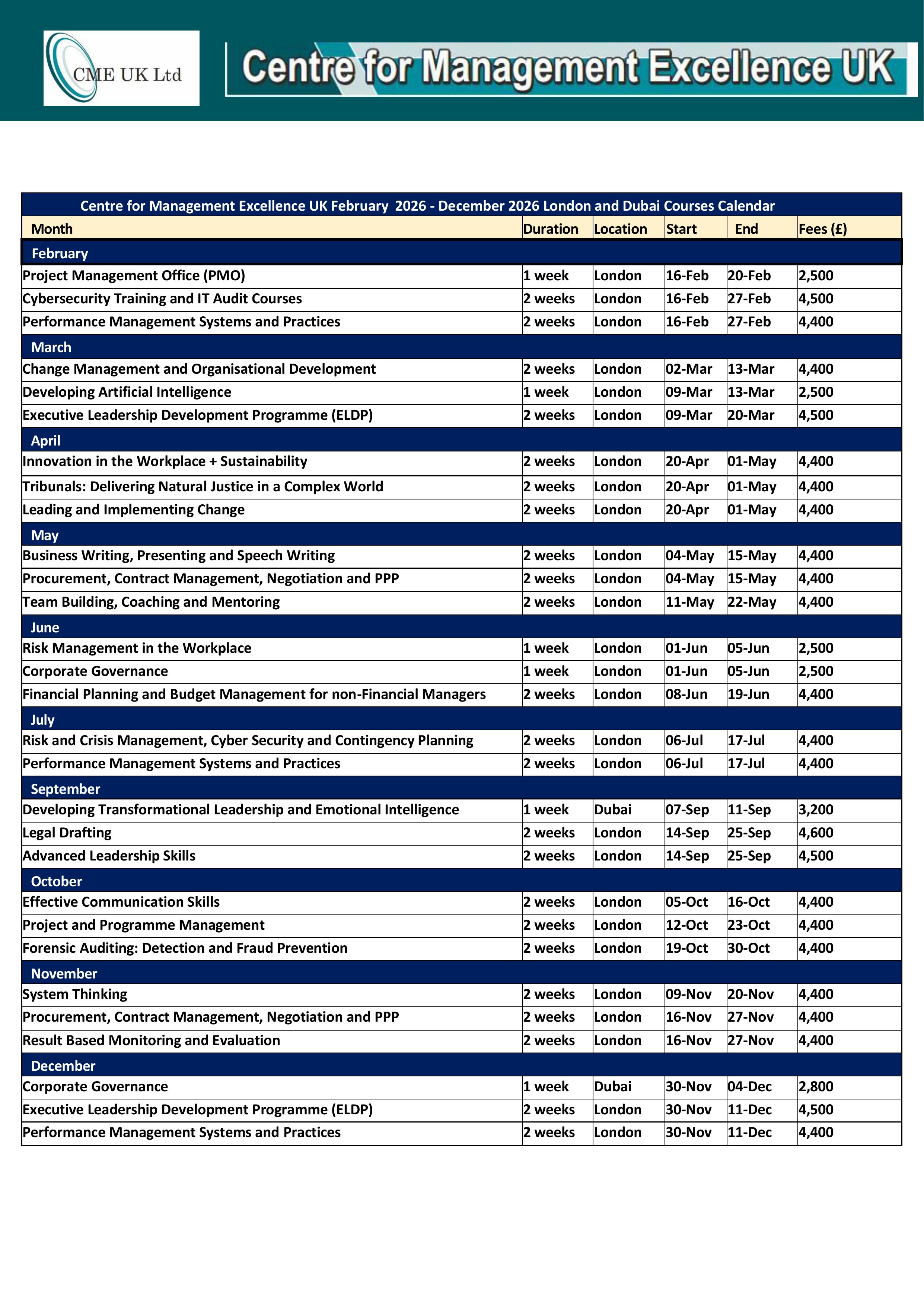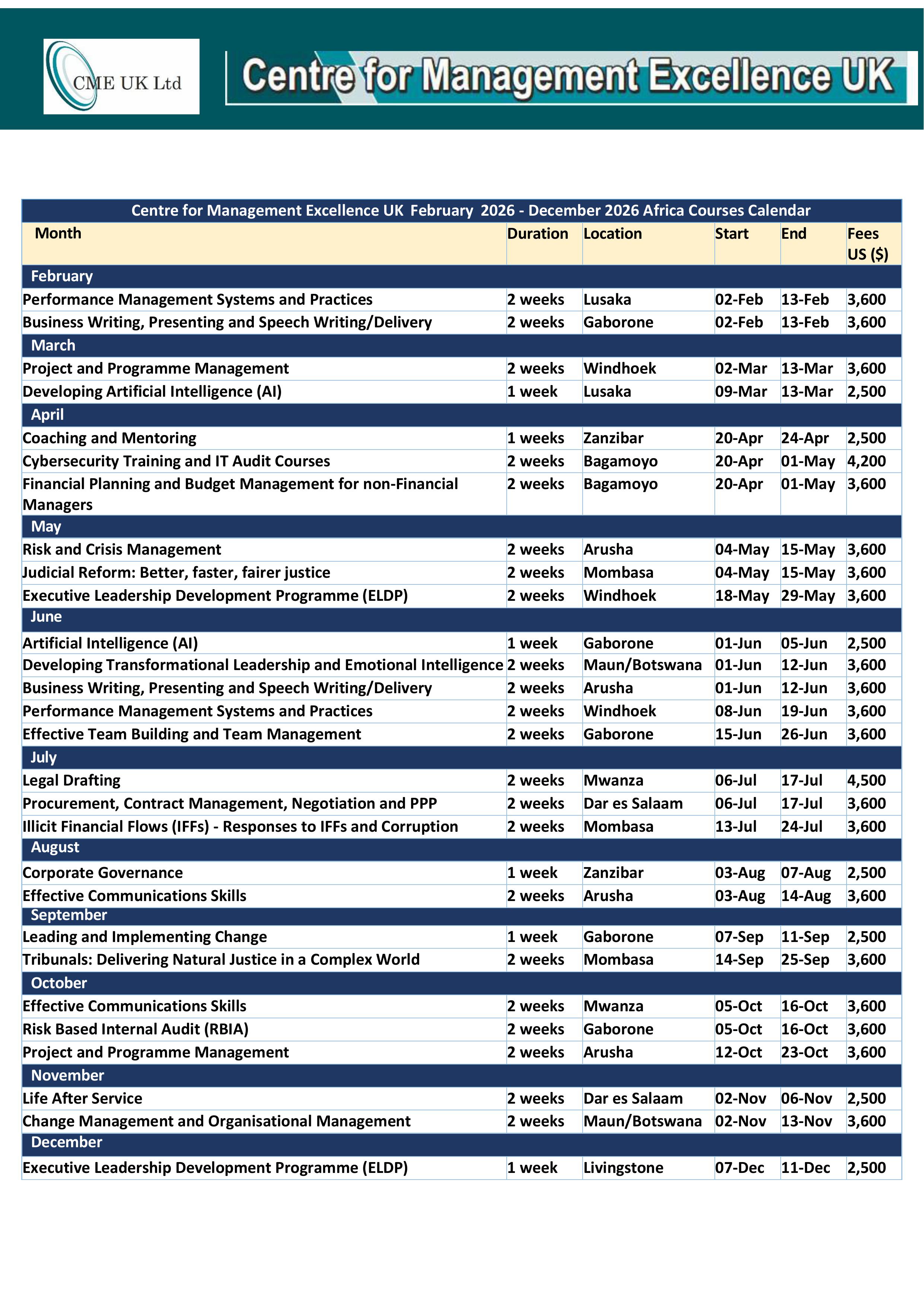 Our courses provide practical tools and strategies to help leaders and managers enhance their abilities, foster team cohesion, and drive organisational success. Whether you are a seasoned executive or a new team leader, our courses can help you develop the necessary skills to become a more effective leader and manager. Courses are available in London, Dubai and Africa.